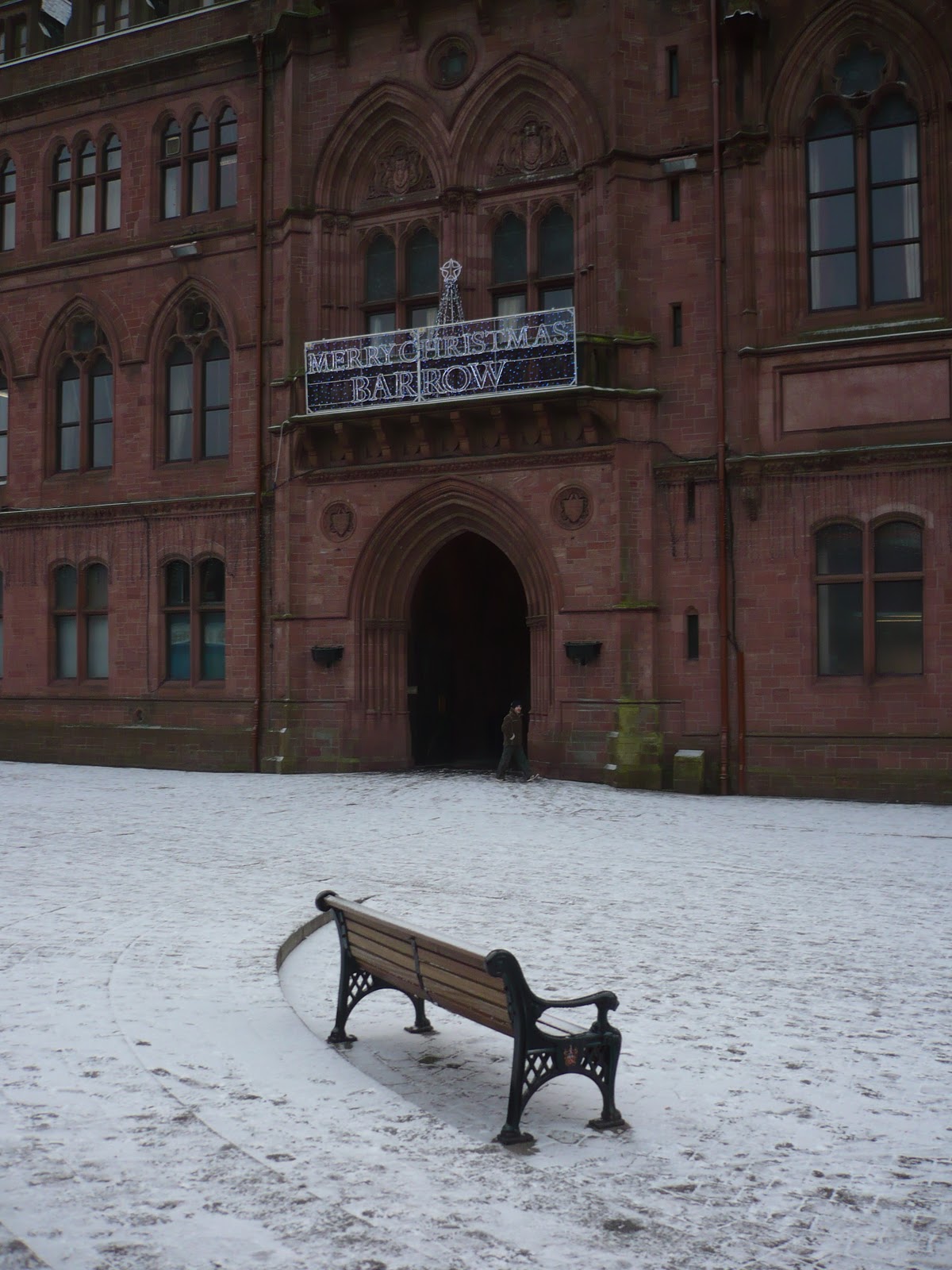 with a covering of snow. This little space is by the side of the Dock Museum, an old Victorian Graving Dock, which in times past had a shipyard by the side of it building sailing ships from 1872-1884 both of wood and iron, what a pity none of them had names starting with X. Oh well what about another look at those numbers carved in stone