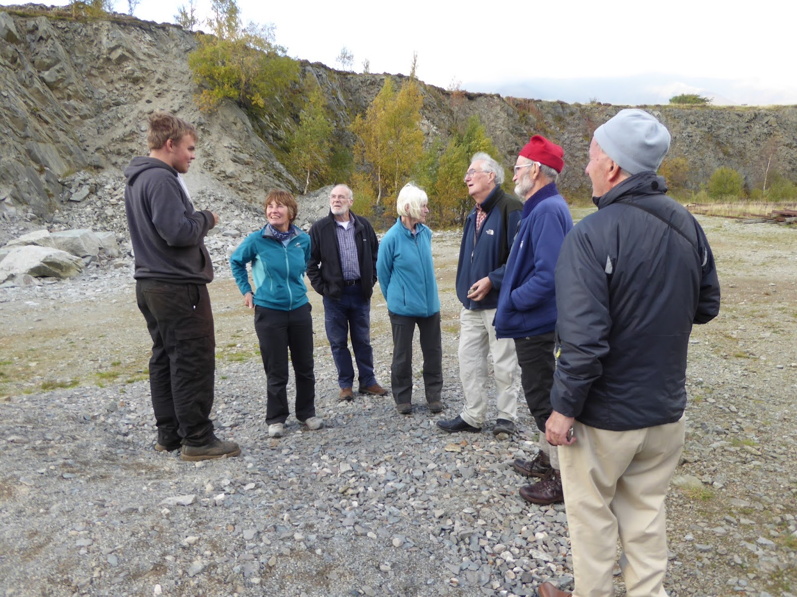 While the train was being readied for its return journey part of the Duddon History Group gathered around to listen to the quarry history told by the train 'ticket inspector'.  Our  history walk had run through the centuries having arrived here from a visit to a Neolithic Stone Circle (3000BC) to this quarry which was started in the 1870s to supply railway ballast for the Keswick to Penrith Line (now closed).  Although the Lake District is more famous for its slate this is a microgranite quarry where the rock was blasted from the quarry face with small explosives so it would shift rock without shattering and then loaded into railway wagons or tubs.